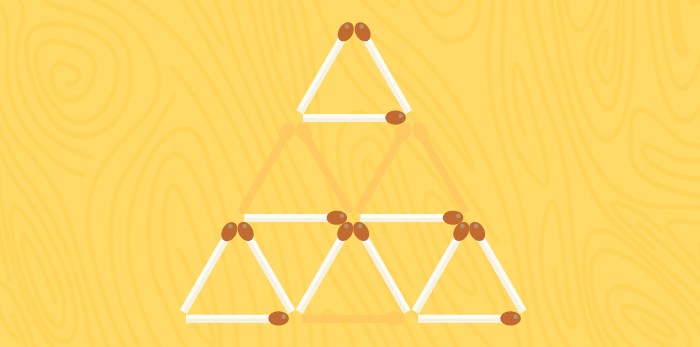 Уберите 3 спички так, чтобы осталось только 3 треугольника.